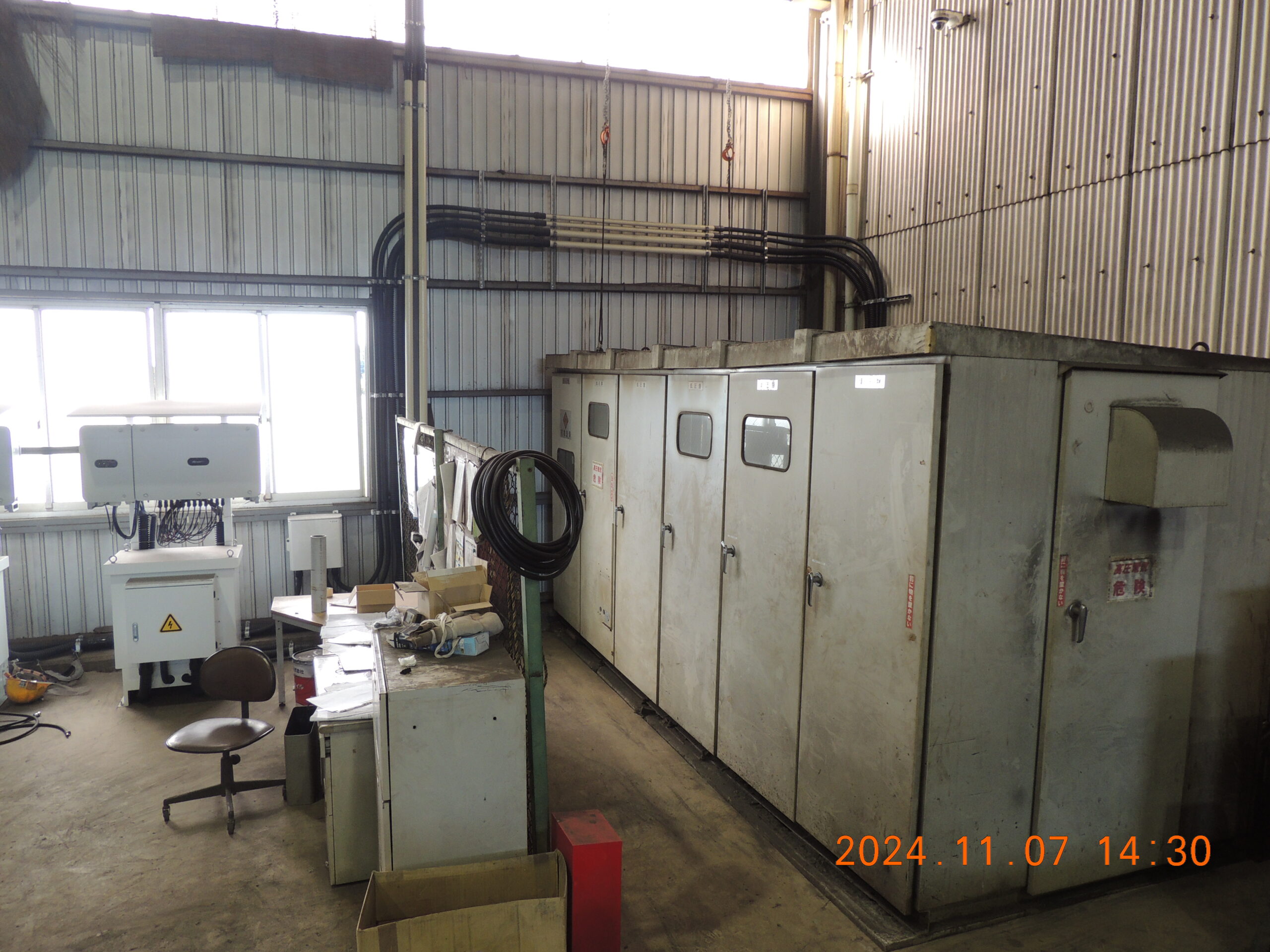 こちらが長年工場の電力を支えてきた既設のキュービクルです。経年劣化が進んでおり、今回、よりメンテナンス性が高く安全な場所へ新しい設備を導入することになりました。
