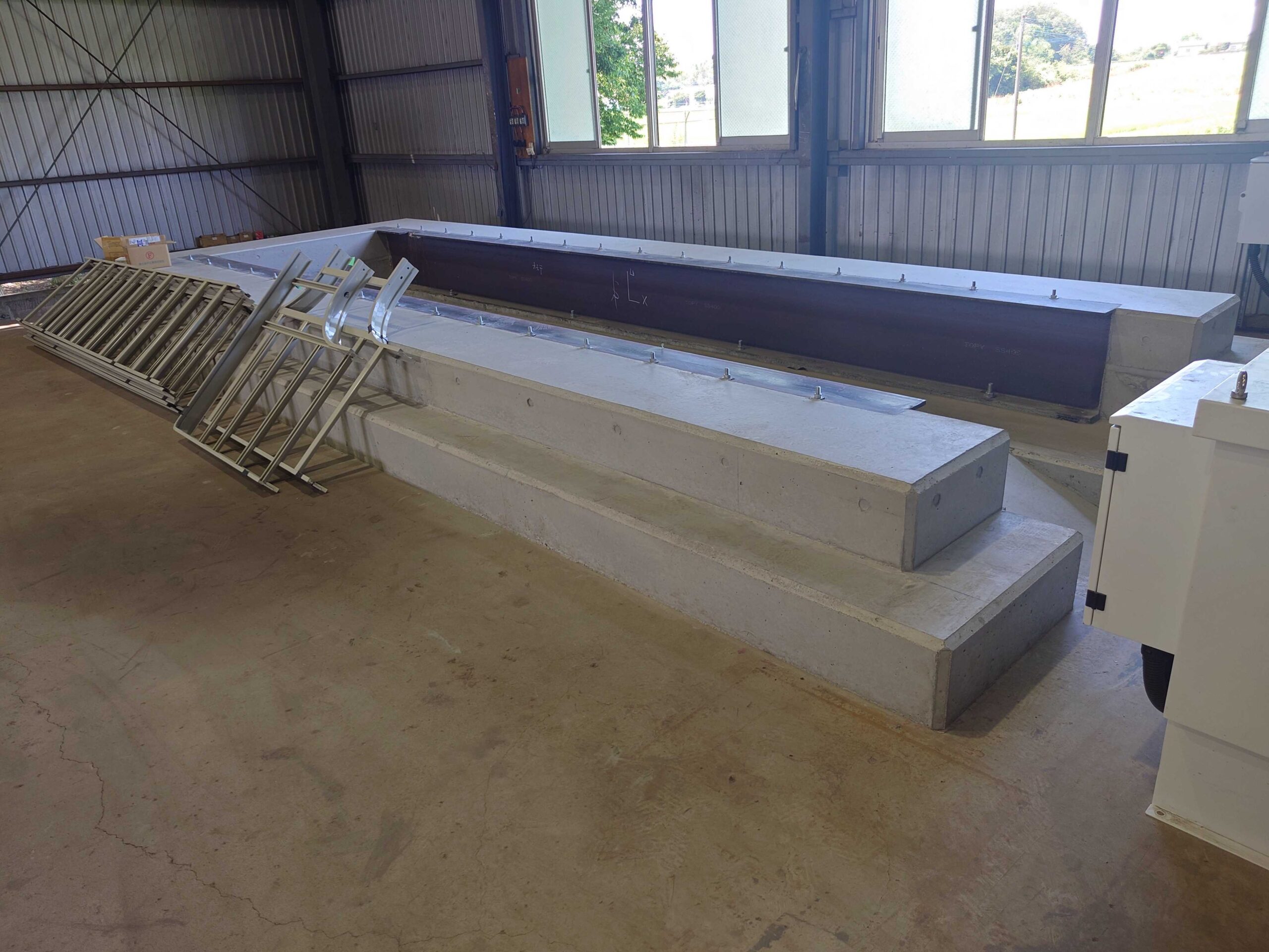コンクリートの打設が完了し、美しい基礎が出来上がりました。 既存の場所とは異なる位置に新設するため、工場の稼働への影響を最小限に抑えながら準備を進めることができます。
