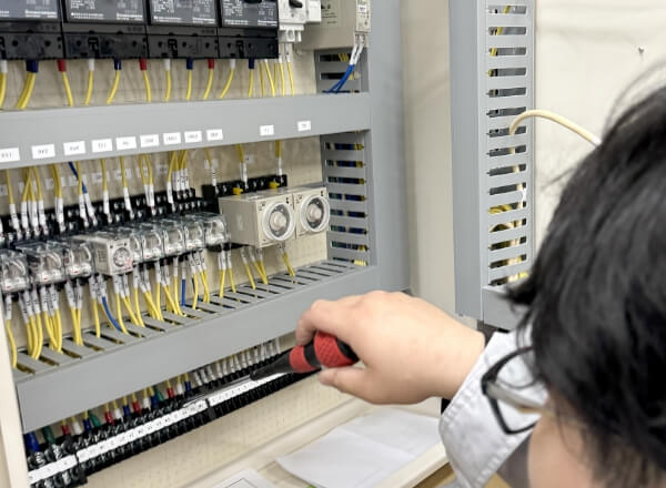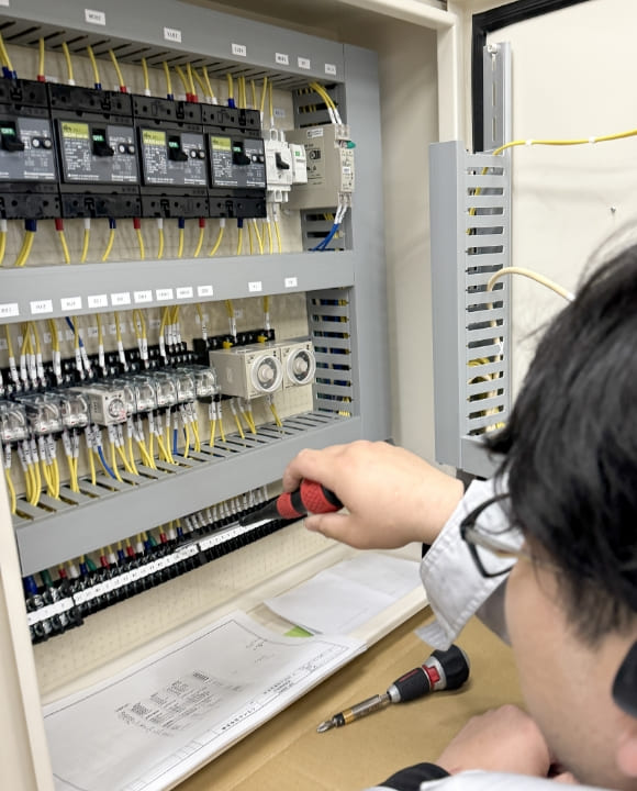 食品製造業や水処理装置製造業、電設資材販売業など多様な業界の設備工事や制御を手掛けるため、ゼネラリストとしての視野と専門的なスキルの両方が養えます。お客様の多様なニーズに応え、毎回新しい技術に挑戦できるやりがいがあります。
